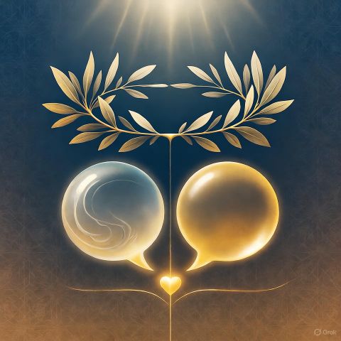 (تصویر یک رادیوی قدیمی که در حال دریافت دو فرکانس همزمان است. یکی از فرکانسها، یک موسیقی آرام، شفاف و دلنشین است (صدای خدا). فرکانس دیگر، یک صدای پر از پارازیت، نویز و زمزمههای نگرانکننده است (صدای شیطان). دستی با آرامش و دقت، پیچ تنظیم را میچرخاند تا صدای پارازیت را حذف و فقط صدای موسیقی شفاف را بشنود.)